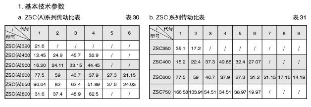 aZSC(A)系列傳動比表表30bZSC系列傳動比表