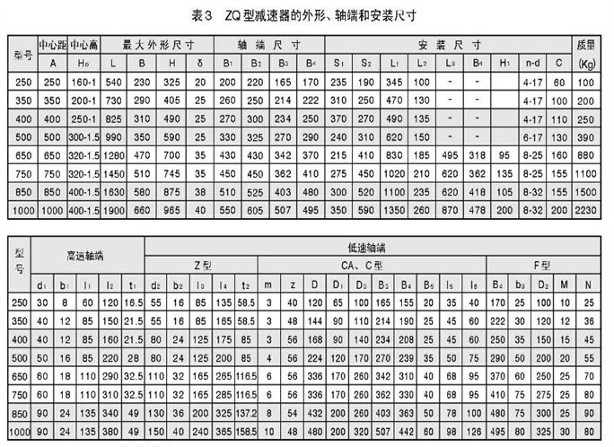 zq型減速器的外形、軸伸和安裝尺寸見(jiàn)圖2和表3。